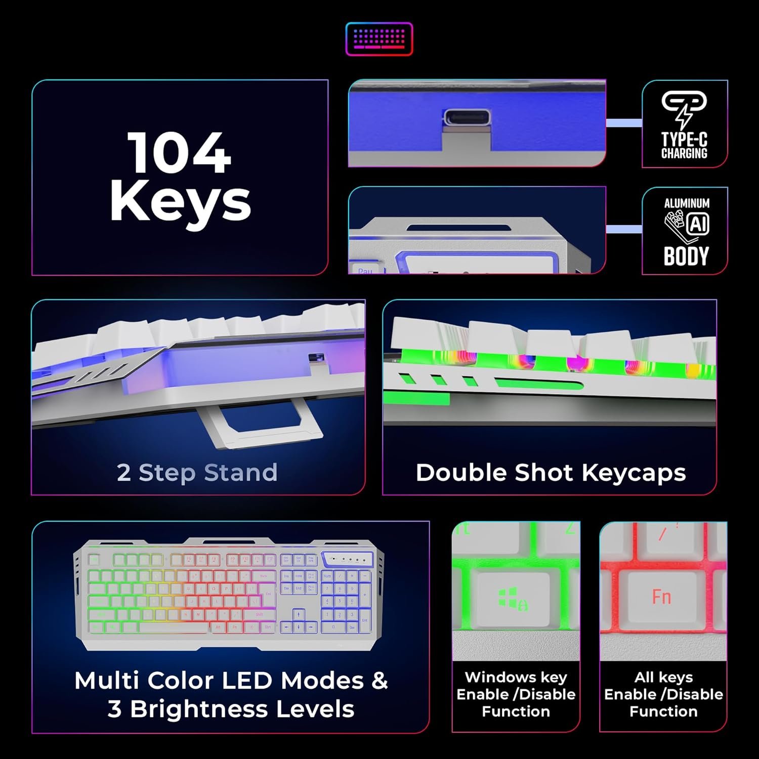 | Generic Name | Zebronics TransformerGaming Keyboard and Mouse Combo, Braided Cable,Durable Al body,Multimedia keys and TransformerGaming mouse with 3600 DPI(White) |